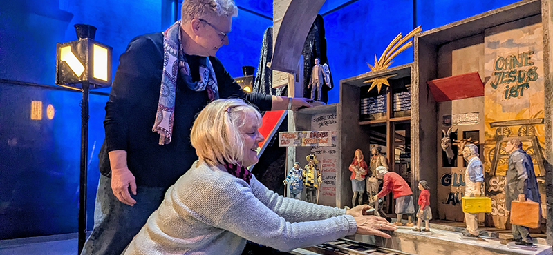 18 Stationen hat der Ökumenische Krippenweg durch die Essener Innenstadt, der die biblische Weihnachtsgeschichte in mannigfaltigen Formen in den Schaufenstern und Foyers von Geschäften, öffentlichen Gebäuden und Kirchen erzählt. | » mehr