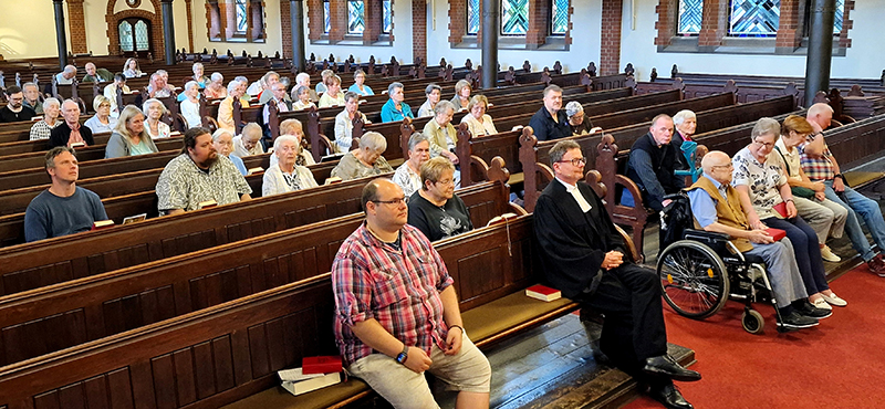 Unser Titelbild zeigt Gäste und Gastgeber bei einem gemeinsamen, von Pfarrer Michael Hüter geleiteten Gottesdienst in der Kirche am Katernberger Markt. Text und Foto: Evangelische Kirchengemeinde Duisburg-Neumühl