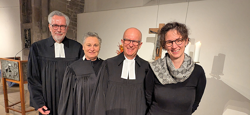 Titelbild v.li.n.re.: Prädikant Harald Genge (Absolvent von "Lebensspuren begleiten"), Monika Kindsgrab (Assessorin & stellv. Superintendentin), Pfr. Wilfried Diesterheft-Brehme) und Pfrn. Dr. Katharina Krause (Nachfolgerin bei "Lebensspuren begleiten").
