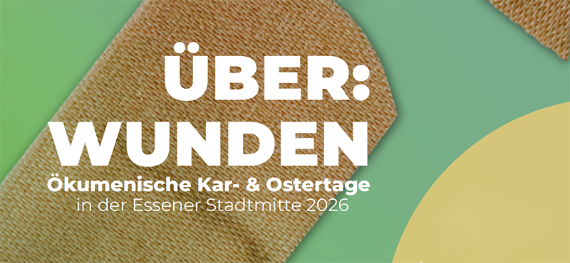 „Über:wunden“ sind die ökumenischen Kar- und Ostertage überschrieben, die die Citykirchenarbeit der Evangelischen Kirche in Essen und die Cityseelsorge „grüßgott“ am Essener Dom in der Innenstadt veranstalten.  | » mehr