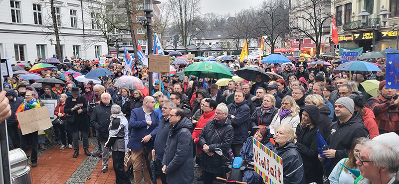 „Steele zeigt Gesicht! Alle zusammen für Demokratie und Vielfalt #AfD nee“ – lautete das Motto der Kundgebung des Runden Tisches Steele am 16. Februar auf dem Grendplatz. Mehr als 700 Menschen nahmen teil; für die Musik sorgte eine elfköpfige Formation von Samba-RuhrgeBeat. Nachfolgend dokumentieren wir die Erklärung, die der Runde Tisch Steele dazu verabschiedet hat.