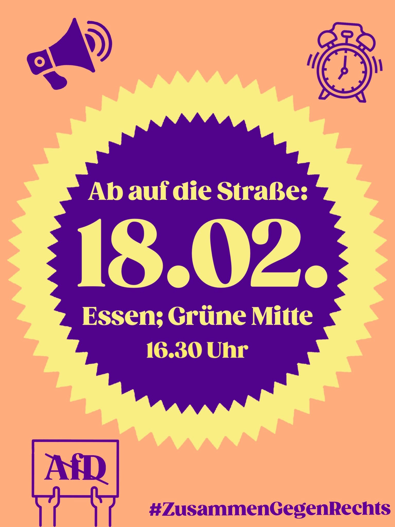 PDF ⇓ | Plakat zur Demonstration am 18. Februar in der Essener Innenstadt