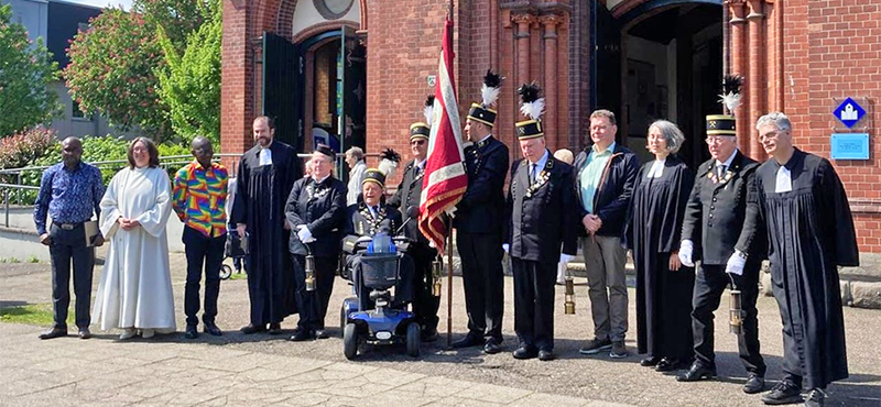 In Grußworten kamen aktuelle und zukünftige Bezüge der Gemeinde zur Sprache: Pfarrerin Claudia Link von der Thomasgemeinde überbrachte die Grüße und Segenswünsche der drei Nachbargemeinden im Gestaltungsraum Nord. Gemeindereferentin Elvira Neumann von der Gemeindeleitung der Pfarrei Heilige Cosmas und Damian betonte die gewachsene diakonische und musikalische Zusammenarbeit. Pastor Rafael Kalamba von der Gemeinde „Säulen der Wahrheit“, einer internationalen Gemeinde, die sich seit Jahren an der Alten Kirche trifft, weitete den Blick für die weltweite christliche Kirche zu der wir alle gehören.