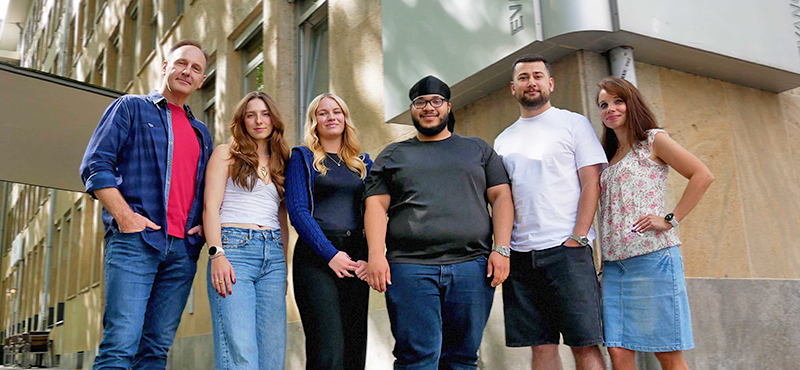 Zur offiziellen Begrüßung kamen (v.li.n.re.) Robert Gregor (Ausbildungsleiter EDV), Luisa Markmann und Charleen Brunsch (Azubis Verwaltung), Emmanuel Akanno (Azubi EDV), Mert Selbes (Azubi Verwaltung) und Britta Köster (Ausbildungsleiterin Verwaltung).