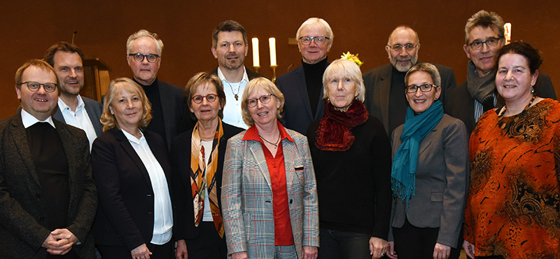 Unser Titelbild zeigt die Mitglieder des Kuratoriums, das die Arbeit der Telefonseelsorge Essen begleitet, gemeinsam mit Superintendentin Marion Greve (vordere Reihe 2.v.rechts) und Msgr. Dr. Michael Dörnemann, Pastoraldezernent im Bistum Essen (vordere Reihe ganz links). Vorsitzender des Kuraotoriums ist Pfarrer und stellv. Superintendent Heiner Mausehund (hintere Reihe rechts), als Stellvertreter amtiert Caritasdirektor Prof. Dr. Björn Enno Hermans (hintere Reihe links). Elisabeth Hartmann, die neue Leiterin, steht in der vorderen Reihe in Mitte; ganz rechts Birgit Dinglinger, Sekretärin der TelefonSeelsorge Essen. Foto: Kirchenkreis Essen/Alexandra Roth.