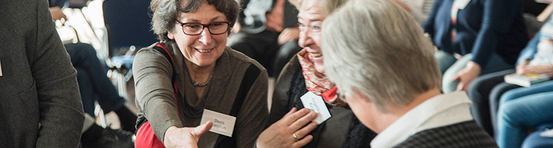 Teilnehmerinnen eine Veranstaltung reichen sich die Hände