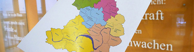 Um ihre Aufgaben und Angebote zukünftig besser aufeinander abstimmen zu können, arbeiten die 26 Essener Kirchengemeinden in sechs regionalen Gestaltungsräumen zusammen. Diese Entscheidung hat die Kreissynode, das Kirchenparlament der Evangelischen Kirche in Essen, im Juni 2023 mit großer Mehrheit beschlossen.